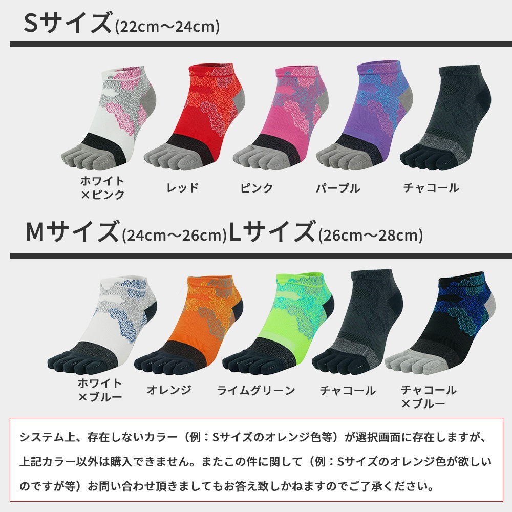 ★5本指仕様のソックスは、足指の掴む力が直に伝わるのでグリップ力が上がり、高パフォーマンスが期待できます。